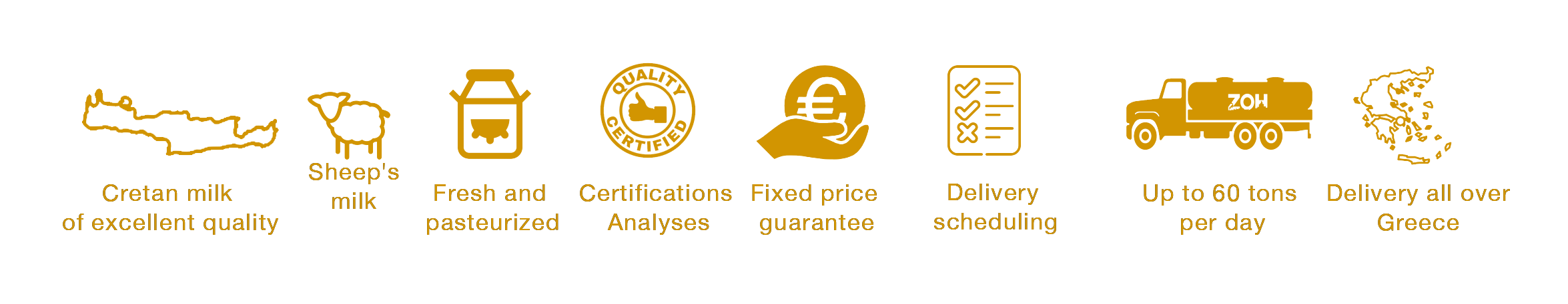 The primary ingredient to produce cheese and dairy products is milk, followed by its management procedures which are especially important. The Farmers Group of Heraklion - ZOE has made a serious investment in milk collection, starting from the timely and correct collection of milk, making sure to supply the Cretan breeders- partners with new ice tanks, thus ensuring the quality of the milk received daily. Every day privately owned milk collection tanks of the company visit dozens of farmers throughout Crete and receive fresh and healthy Cretan milk. The annual quantity of incoming milk is high in both sheep's and goat's milk, with the prospect of doubling these quantities in the next milk season.
